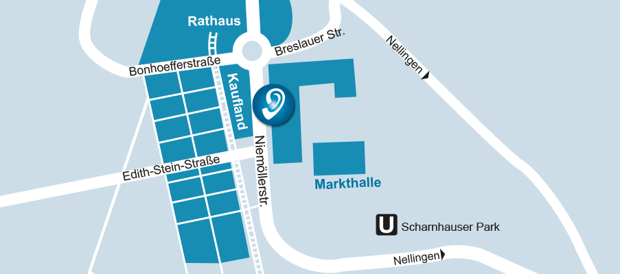 Sie finden unsere iffland.hören.-Filiale im Zentrum des lebenswerten Stadtteils Ostfildern Scharnhauser Park in der Niemöllerstraße 3/1. Unweit der Markthalle, der Volksbank bei der Stadtbahnhaltestelle Scharnhauser Park oder der örtlichen Filiale des Discounthändlers Lidl und quasi einen Katzensprung von der markanten Landschaftstreppe entfernt, bieten wir Ihnen alles rund ums Thema gutes Hören.